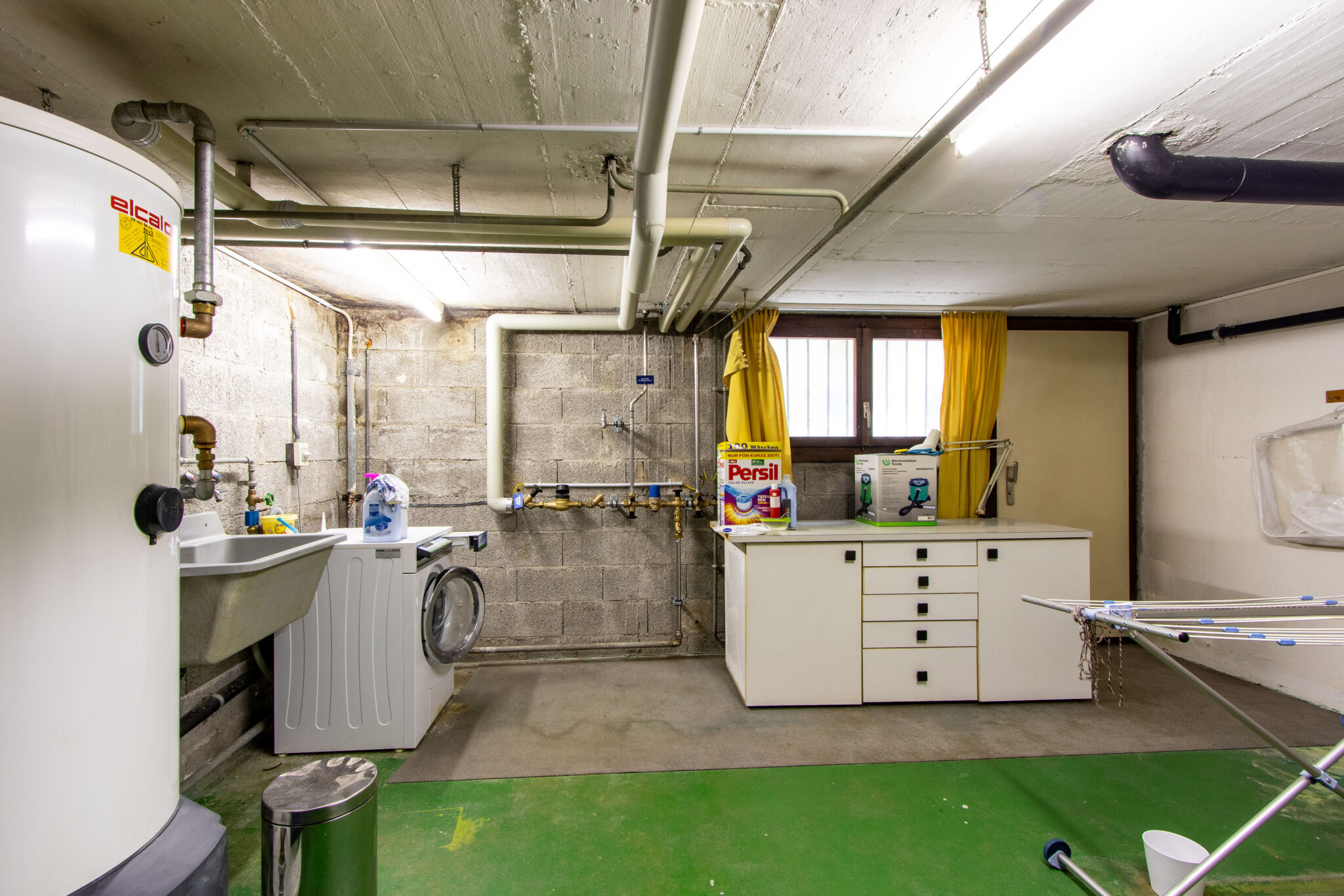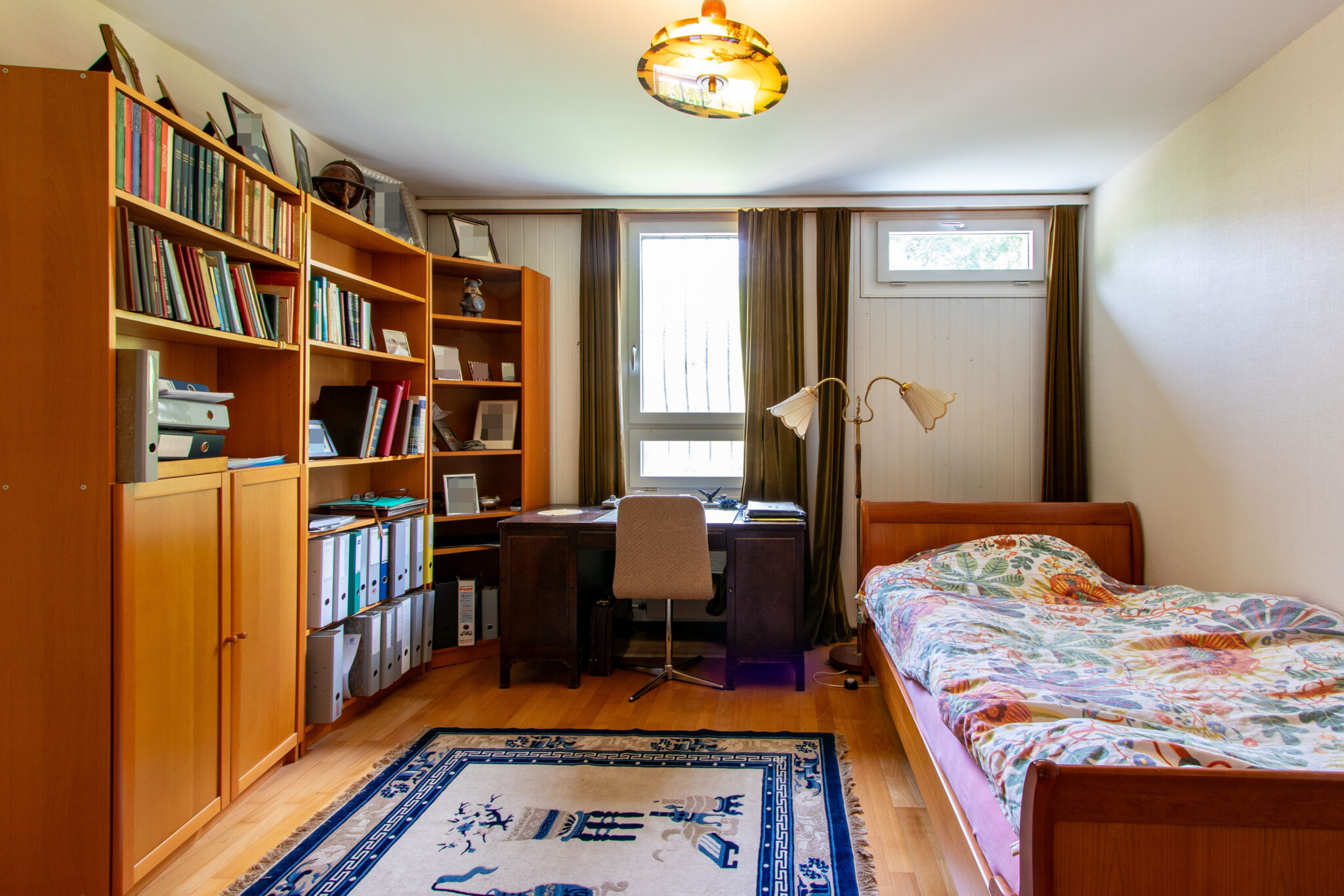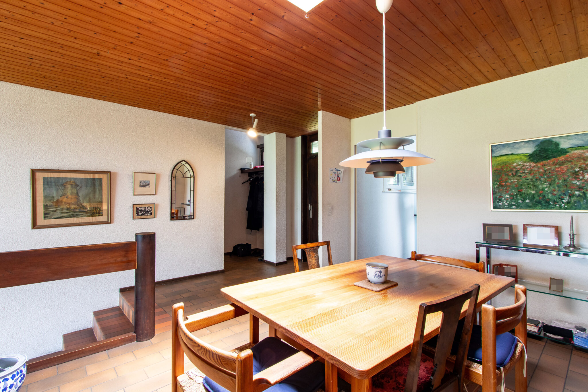 Cette maison mitoyenne bien entretenue au style typique des années 1970 se situe dans un quartier paisible et familial de Villars-sur-Glâne – l’une des communes les plus recherchées de la région de Fribourg. Le lotissement "Résidence II" se compose de 19 unités d'habitation au total, dont 5 en propriété par étage et 14 en copropriété.