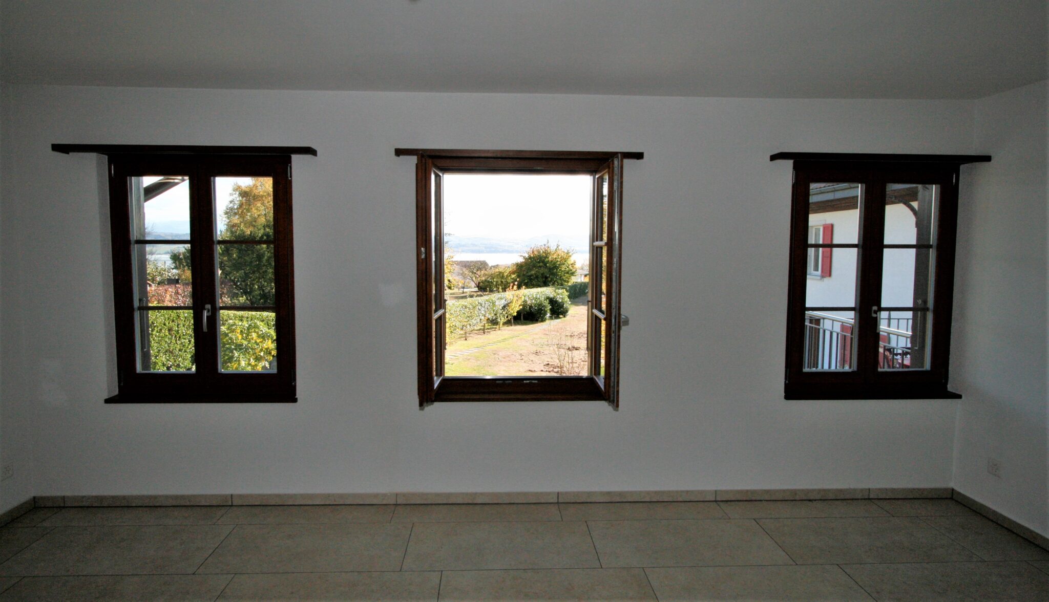Vom Wohn- sowie vom Schlafzimmer aus geniessen Sie eine wunderbare Aussicht auf den Murtensee. Als weiteres Highlight findet sich im Essbereich ein funktionstüchtiges Cheminée für kalte Wintertage.