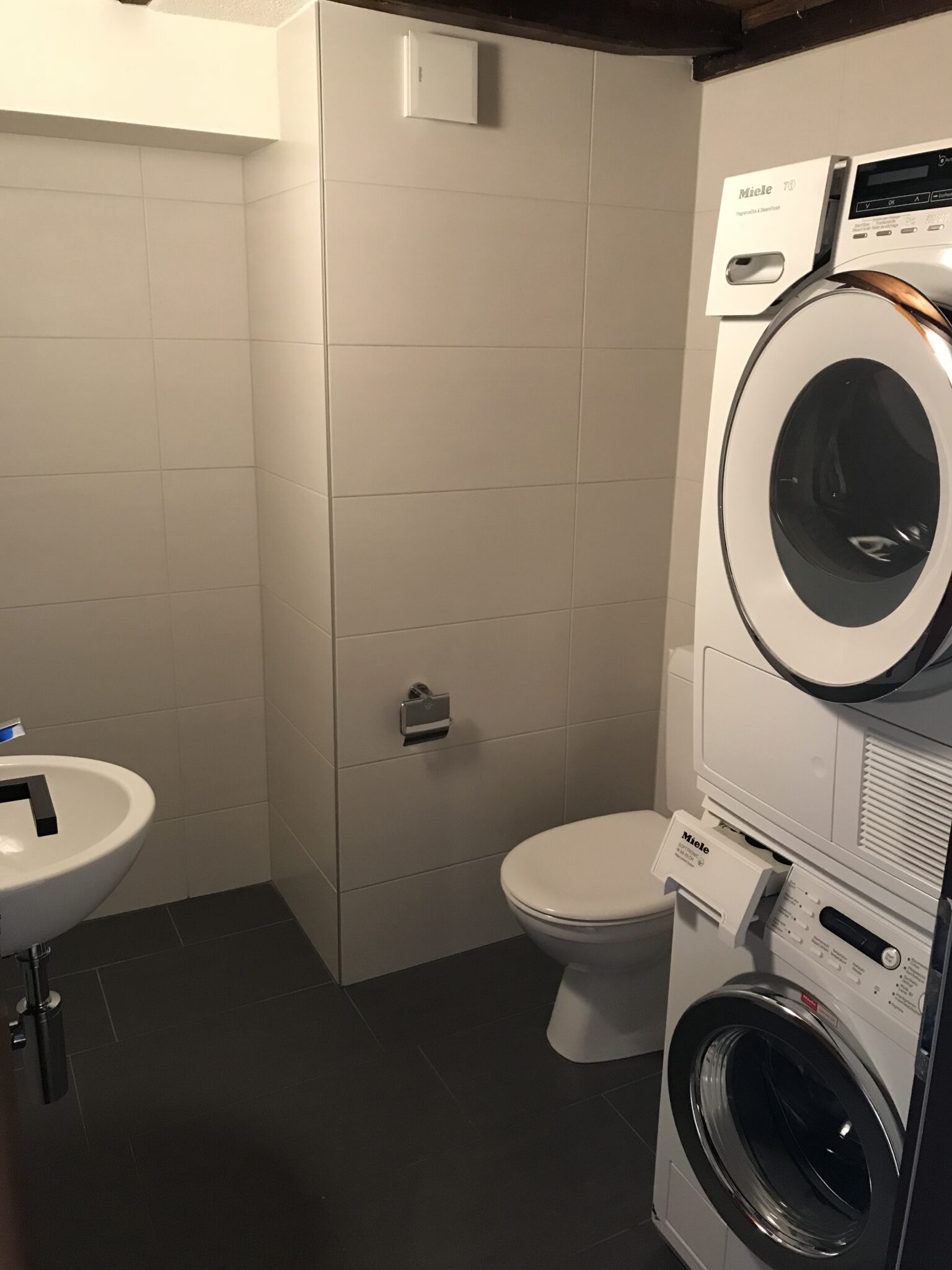 Im separaten Gäste-WC findet sich zudem eine eigene Waschmaschine und ein Tumbler.