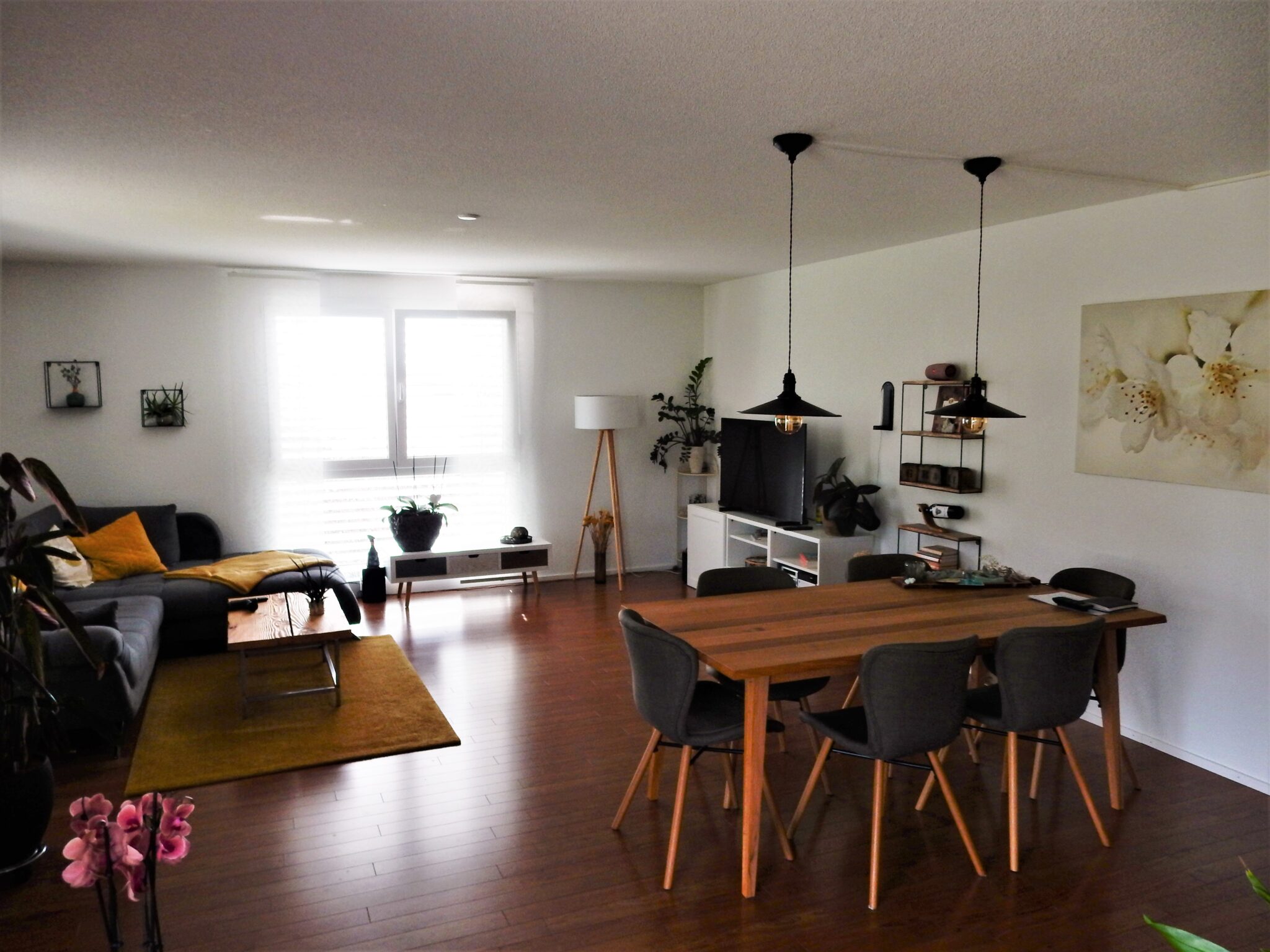Alle Zimmer sowie die offene Küche sind mit einem Laminatboden ausgestattet, der ein warmes und wohnliches Flair versprüht.
