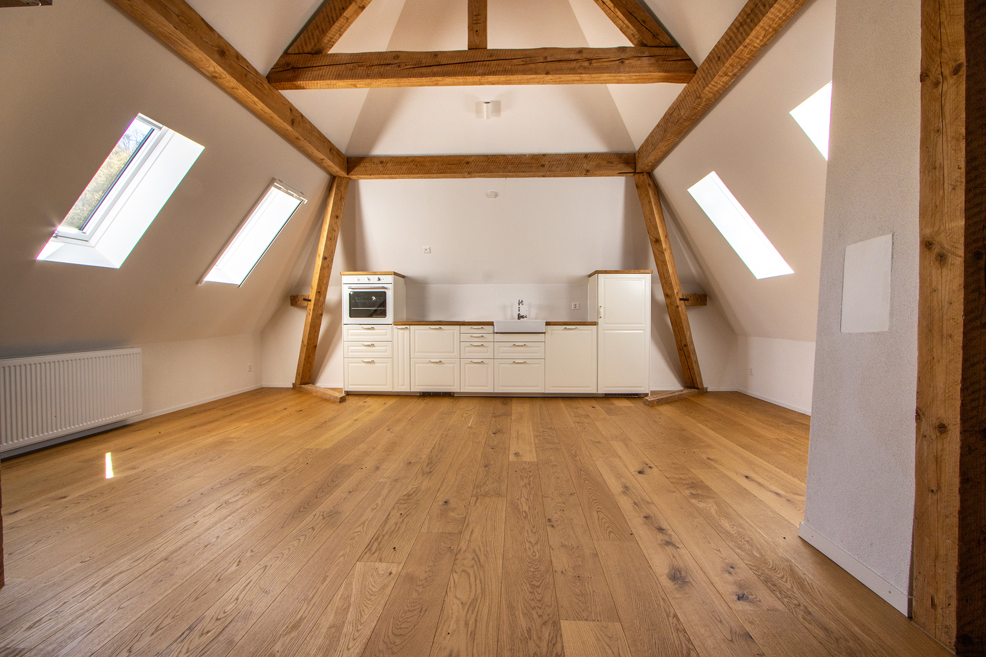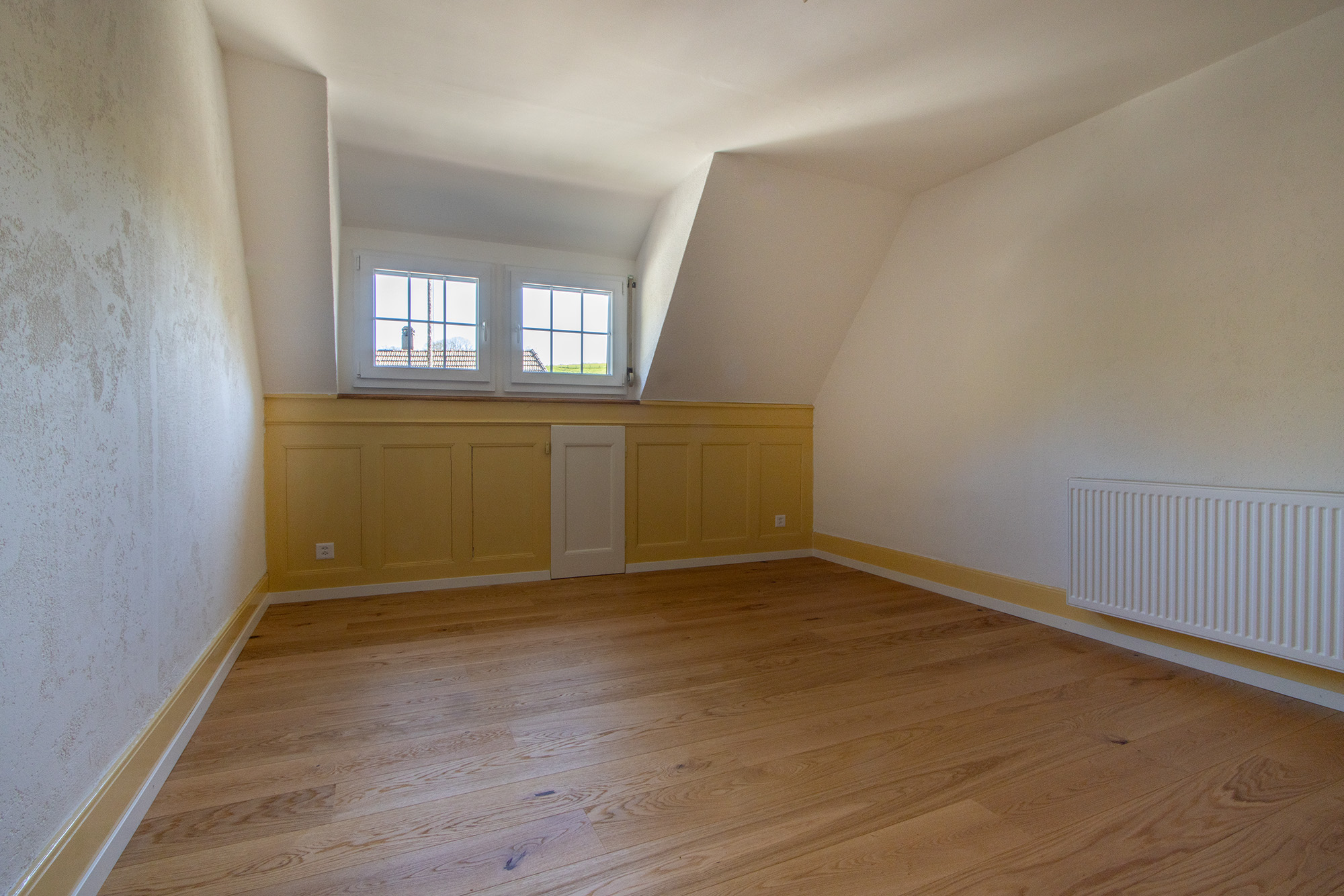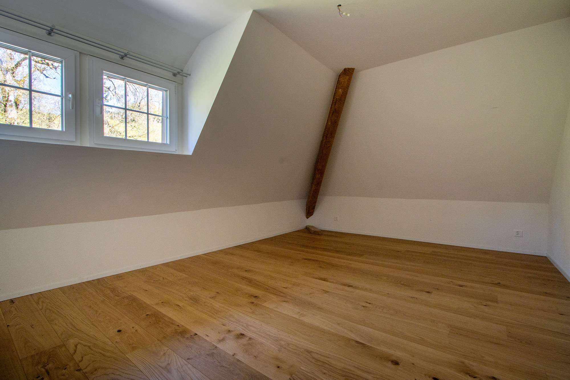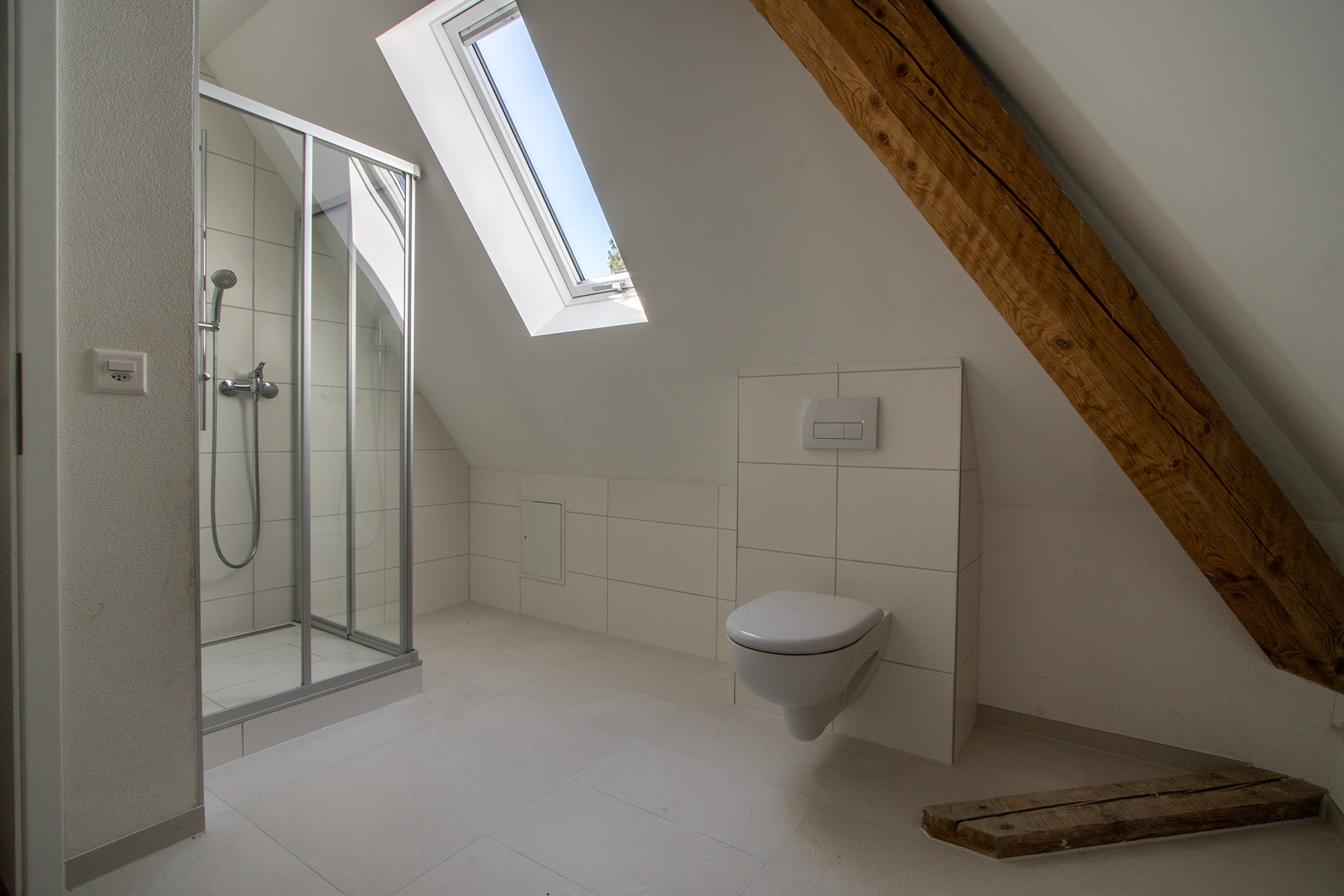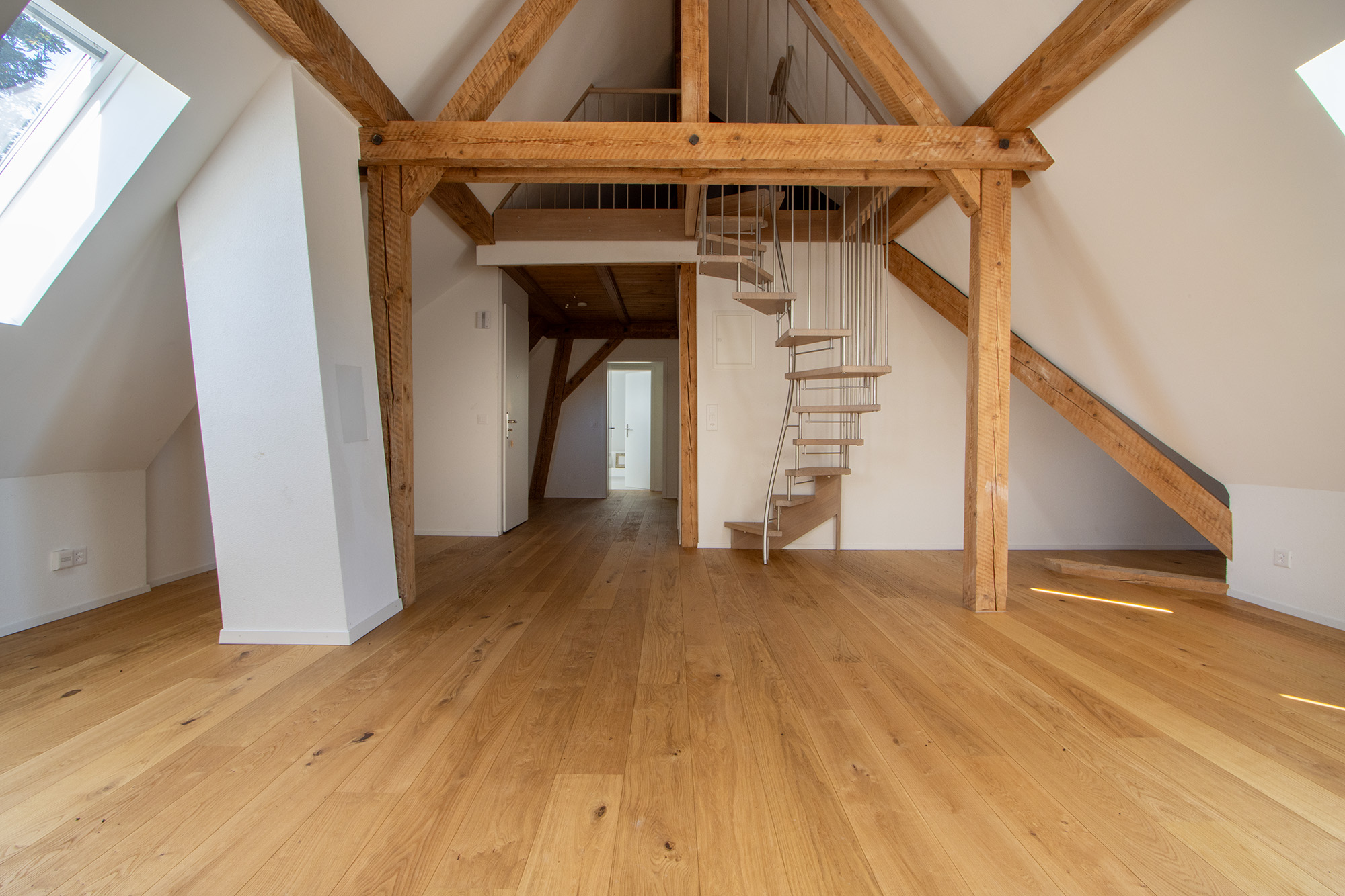 Die Dachwohnung wurde im Jahr 2022 neu ausgebaut. Die Wohnung ist mit einer gemütlichen Wohnküche ausgestattet, welche über einen Geschirrspüler verfügt und mit dem Wohnzimmer verbunden ist. In den Zimmern wie auch in der Küche und Wohnzimmer geniessen Sie einen Parkettboden. Das Bad mit Dusche ist mit einem Plattenboden ausgestattet. Die Holzbalken und die Galerie verleihen der Wohnung eine Gemütlichkeit.