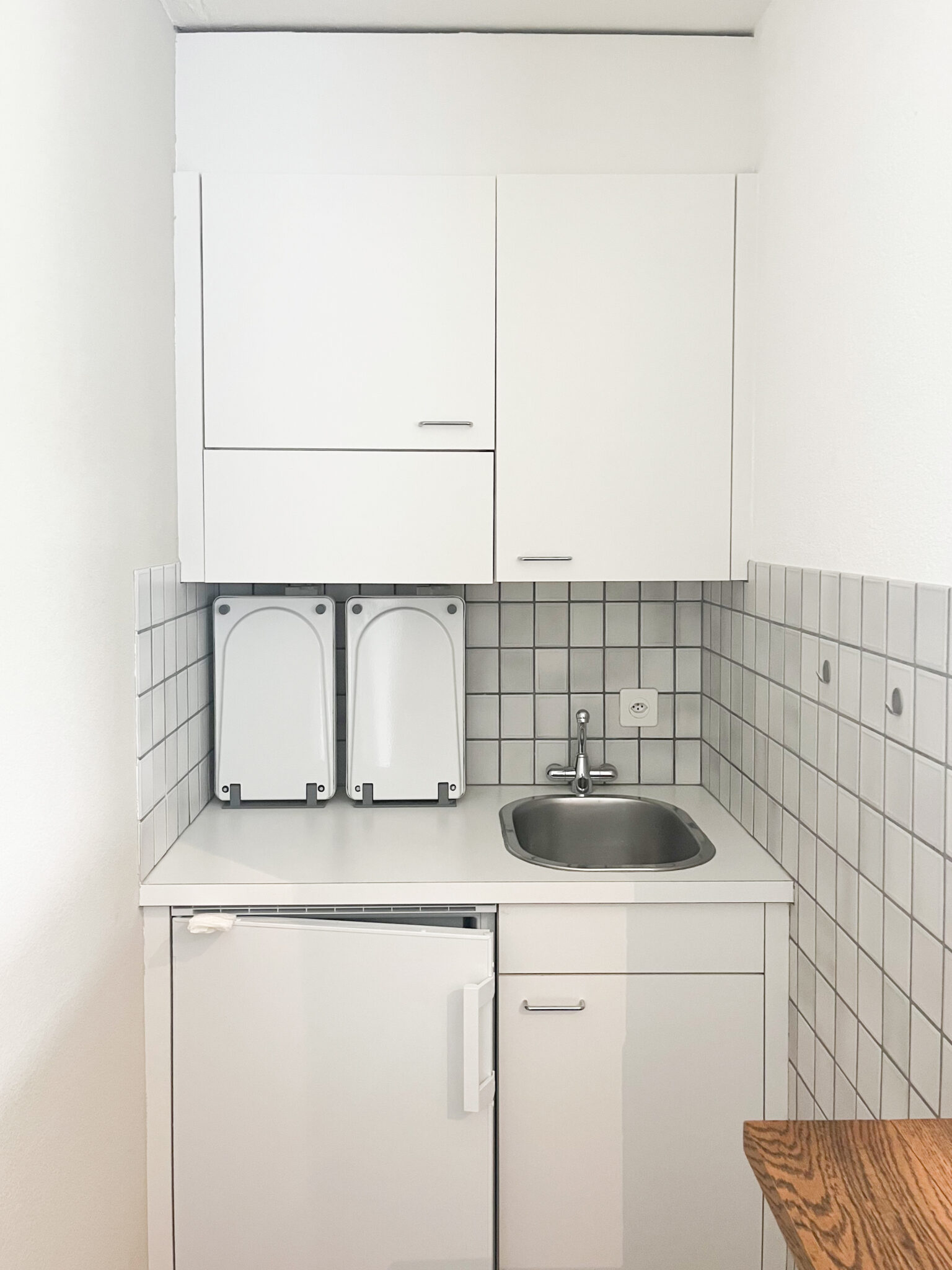 Das Objekt verfügt über 2 separate Zimmer; Einen Eingangsbereich mit grosszügiger Fensterfront und Küchenablage sowie ein Zimmer im hinteren Bereich.