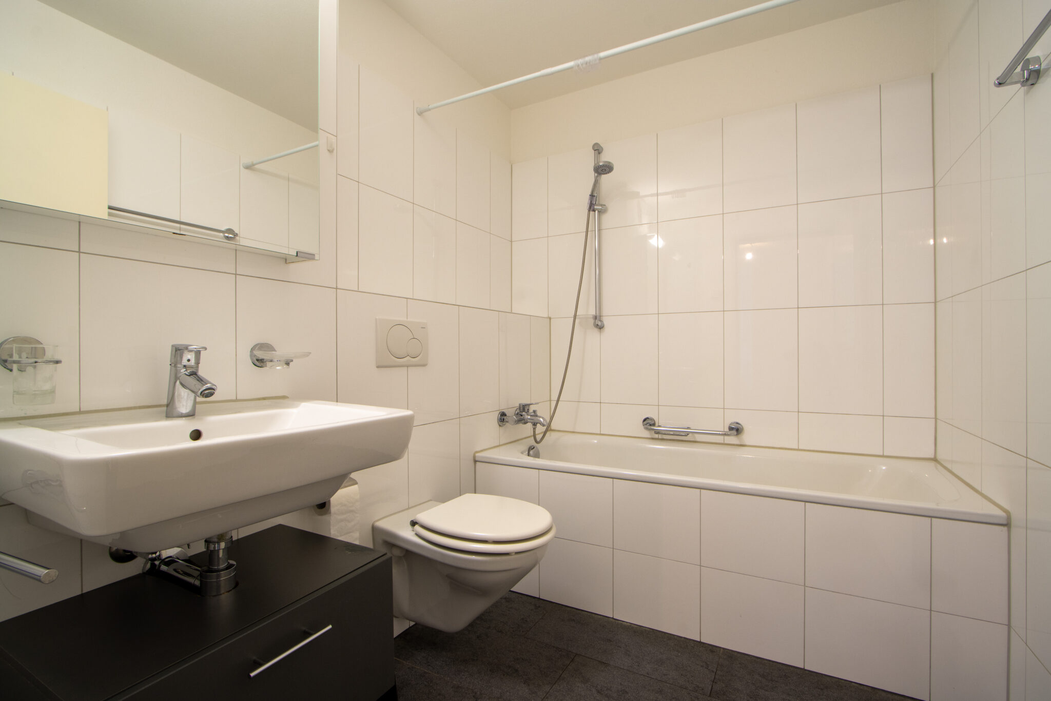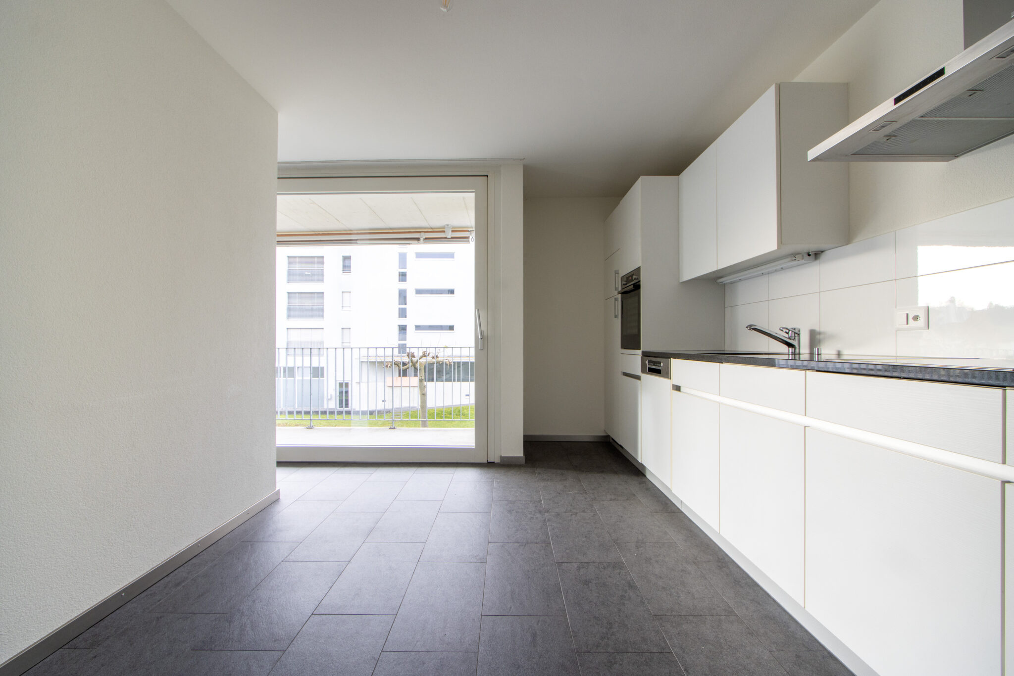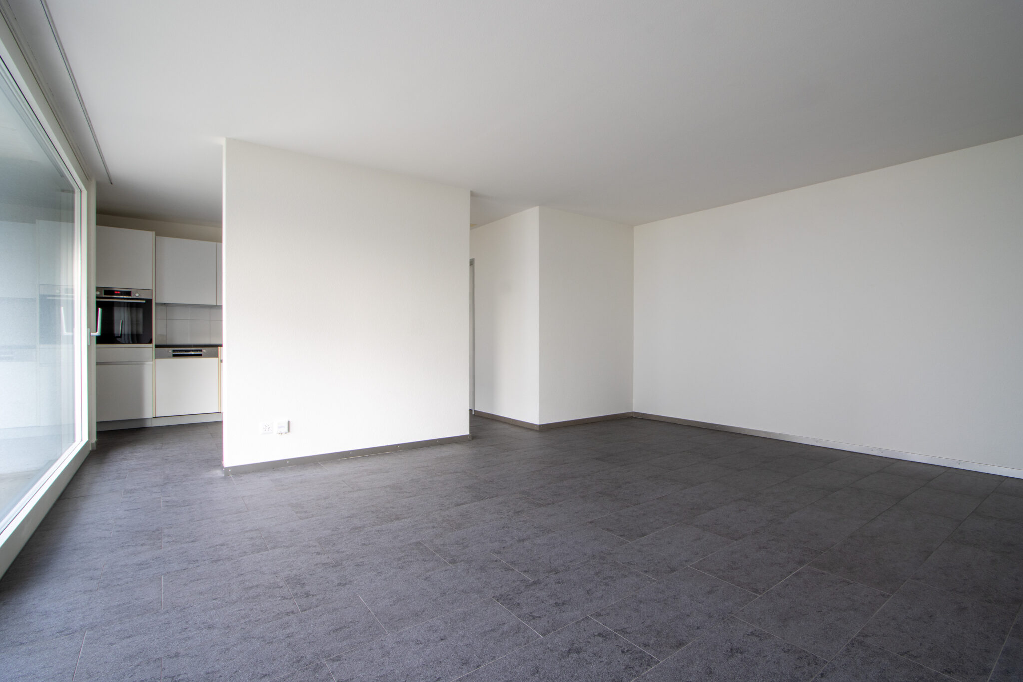 . Pflegeleichte Plattenböden in Wohnbereich, Badezimmer und Küche