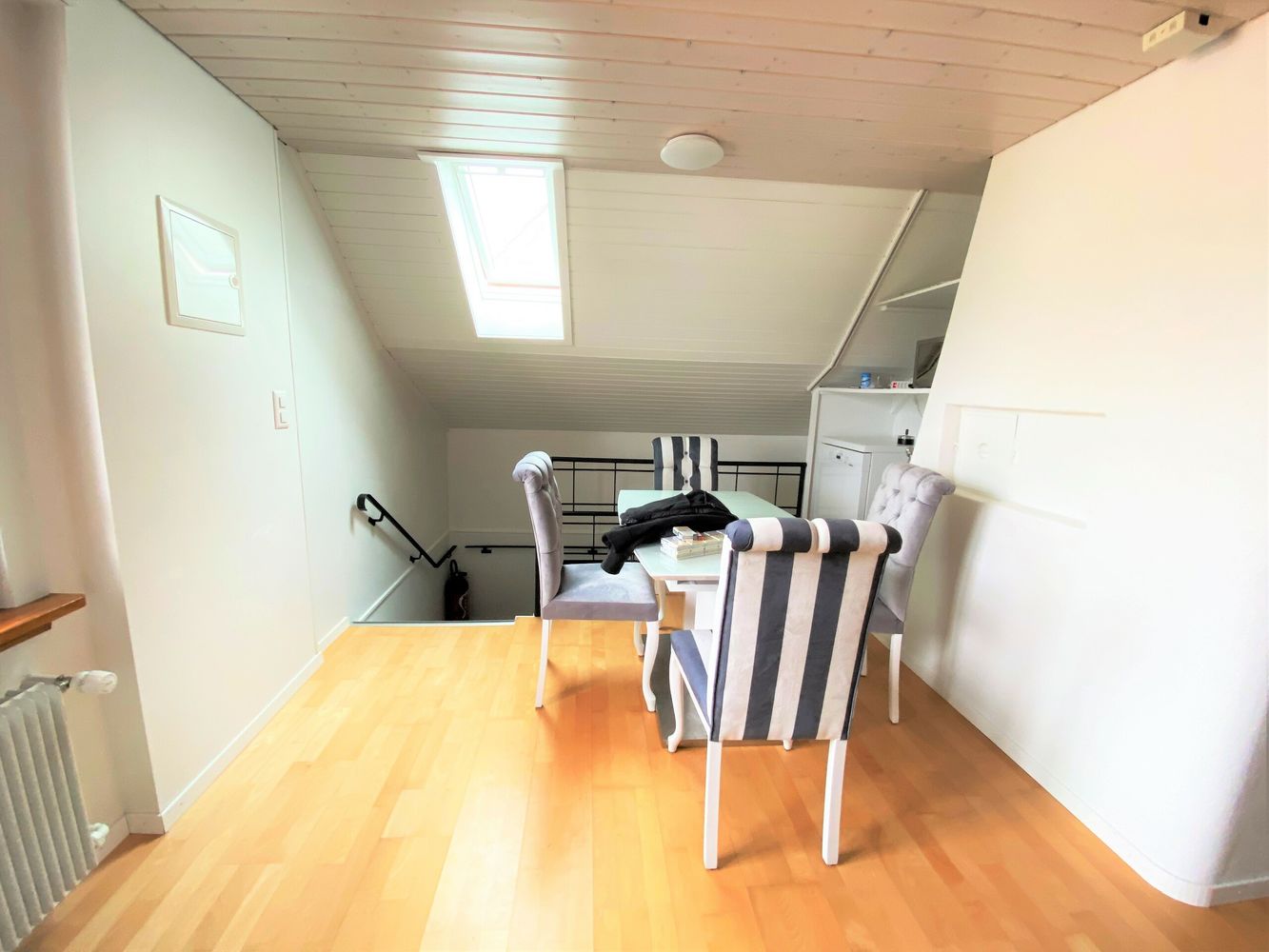 Auch die 4-Zimmer-Wohnung im 2. Obergeschoss, welche über eine Aussentreppe hinter dem Haus erreichbar ist, wurde 2012 teilweise saniert. Dabei wurde das Galeriezimmer ausgebaut, was der Wohnung einen neuen Glanz verleiht. Vom Eingang der Wohnung aus führt eine Treppe direkt zum Essbereich und der Küche. Von dort aus erreichen Sie alle Zimmer sowie das Badezimmer. Über eine weitere Treppe gelangen Sie in das Galeriegeschoss, das weiteren Wohnraum schafft.