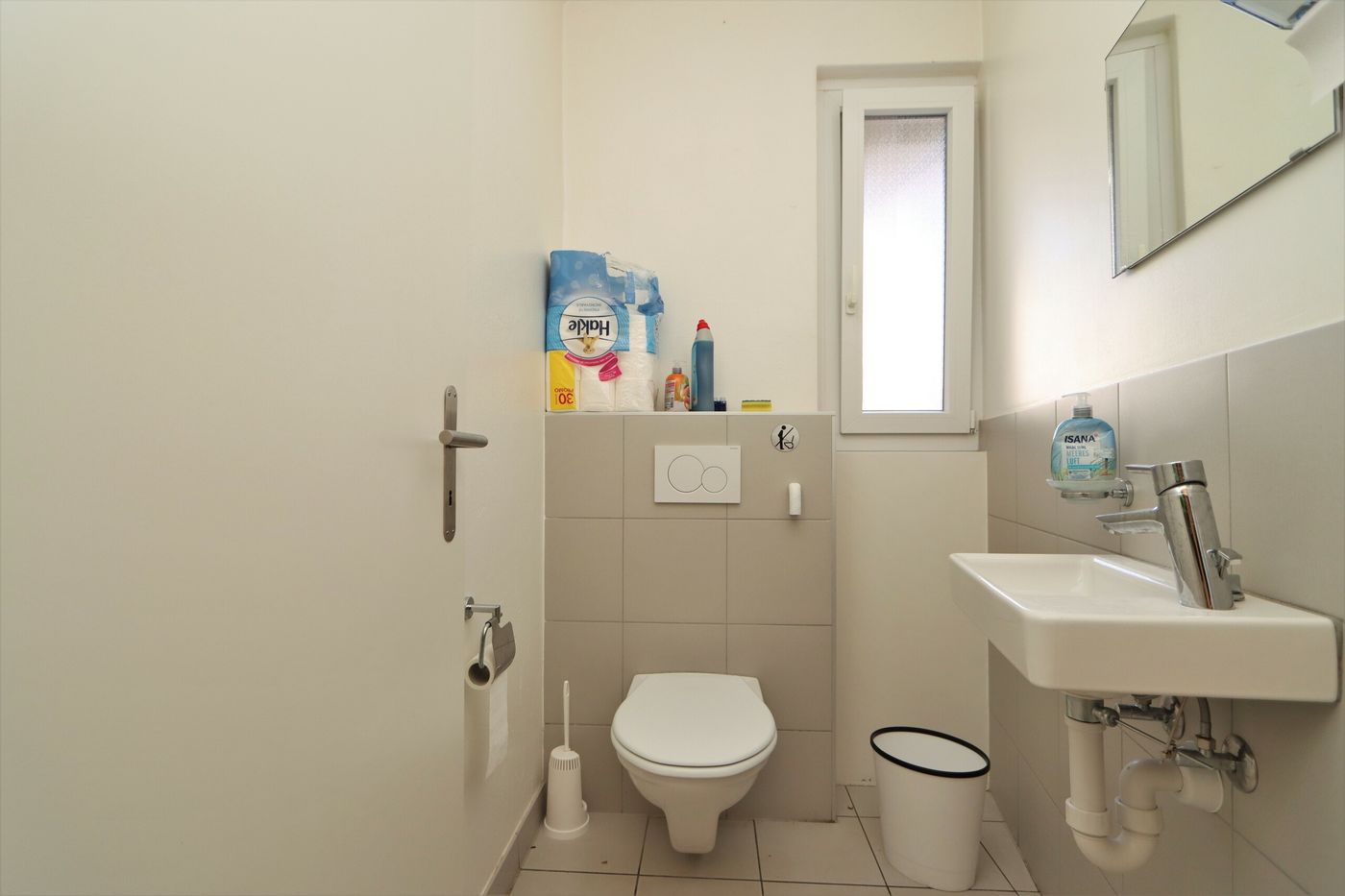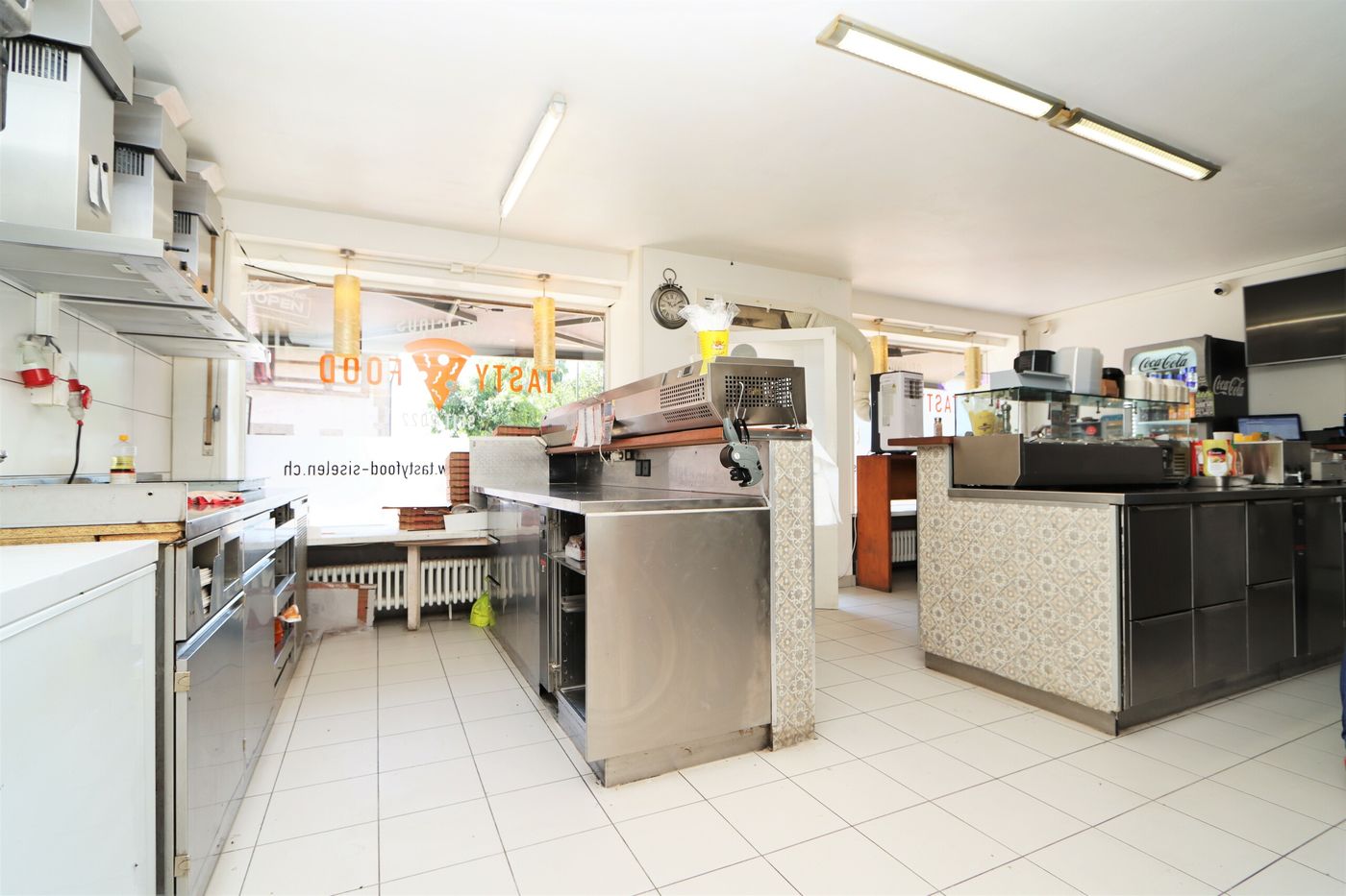 Die Gewerbeeinheit im Erdgeschoss umfasst 48 m2 und ist in einen vorderen und hinteren Teil aufgeteilt. Im Jahr 2015 wurde das Ladenlokal im Erdgeschoss komplett saniert und zusätzlich ein separates WC sowie eine kleine Küche im hinteren Teil eingebaut. Die aktuellen Mieter haben ausserdem im Jahr 2021 eine Gewerbeküche, eine Lüftung und einen Kühler ergänzt. Diese Investitionen gelten allerdings als Mieterausbau. Aktuell ist die Einheit an eine Take-away-Pizzeria vermietet.